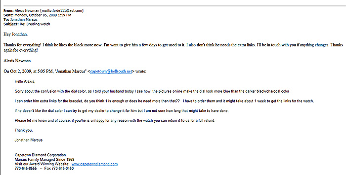 Sent: Monday, October 05, 2009 1:59 PM To: Jonathan Marcus Subject: Re: Breitling watch Hey Jonathan.