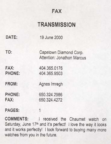 I received the Chaumet watch on Saturday, June 17th and it's perfect! I love the way it looks and works perfectly! I look forward to buying many more watches from you in the future.